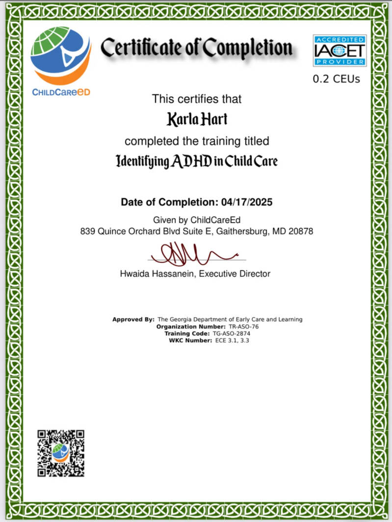 Discover the peace of mind that comes from knowing your children are in expert hands. With over 36 years experience in childcare since newborn up to teen, twins, special needs autism, Down syndrome, ADHD, ODD, bilingual Spanish and English, I have many certifications and background check.